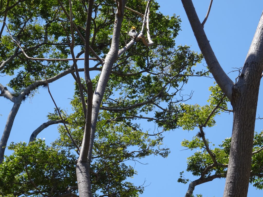 Walked down into town and stopped at a cheap soda for (yes, you’ve guessed!) a casado, but this one had scrambled eggs in it! (so much for being vegan). Then back to Cala Lodge for coffee on the terrace outside the reception where we spotted a hummingbird busy getting nectar from a bush and another beautiful bird on top of a tree stump.