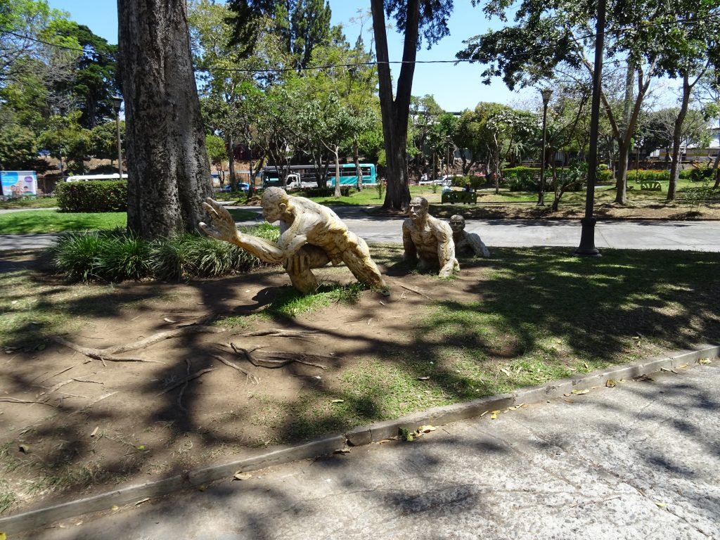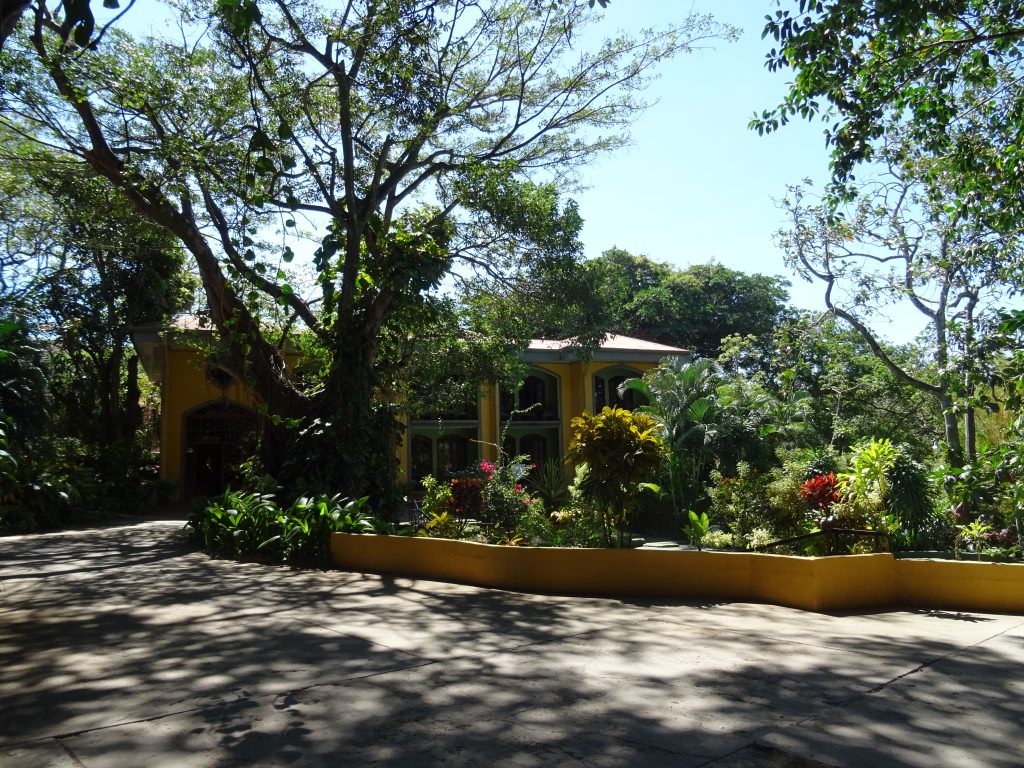 Ready to leave this dreary, wet and bleak weather for a sunnier climate! We arrived at San José Juan Santamaria airport after a 10 1/2 hour flight (and two very nice vegan meals, with wine and tea). The transfer to our hotel took one hour as there was an accident, as our driver explained. I had a nice surprise: I got a present for my birthday, a nice canvas bag, a little wooden box with a painted butterfly and a fridge magnet (courtesy of Ecole travel agency). The Aranjuez Hotel is very nice, colonial style, 1930s, separate houses, a bit of a labyrinth. A beautiful garden. Very colourful ‘creatures’ dotted around the hall and corridors.