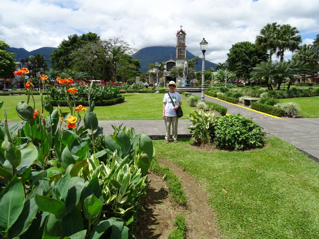 After a good breakfast we were picked up at 9.30 and made our way to La Fortuna by shuttle bus. On the journey we had three very chatty companions, especially an Argentinian man who talked non-stop, in Spanish, to a couple from Spain – about ham and football! It was interesting to hear his intonation, unmistakably Argentinian, it sounded very musical (although by the end of the journey I was quite fed up with his chatter…). We changed bus in Guápiles; stopped at a restaurant called Ponderosa, where they had photos of actors from Bonanza. We started singing the tune… quite funny! We shared a mixed salad. Then another two hours to La Fortuna and to Hotel Monte Real, with a view of the Arenal volcano.