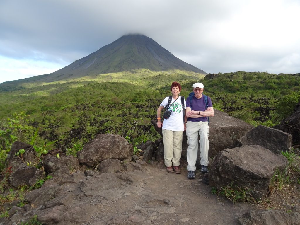 At 2.30pm we were picked up and driven to the start of our hike around the Arenal volcano. Walked up and downhill, took some photos of amazing views of the volcano and the surrounding hills. Yara, our guide, showed us some photos of the volcano as it used to be and how it is now, a photo of the lava flow from the eruption in 1968. In fact our path followed the original road at the base of the volcano.