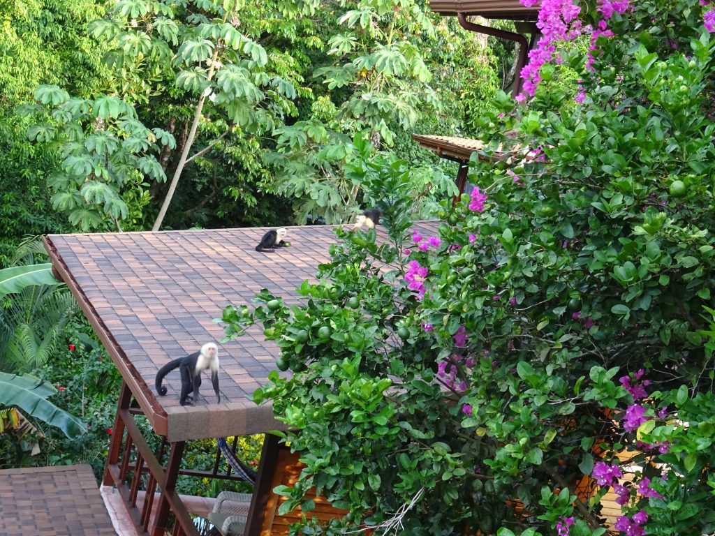 Left Cala Lodge and its wonderful staff for a four hour journey to Manuel Antonio, on the Pacific coast. Stopped at a restaurant-cum-souvenir shop on the way; the temperature here was 35 degrees, a bit of a shock from cool Monteverde! Villas Nicolas, our hotel, is set among trees and our terrace has views of the sea. Quite luxurious.