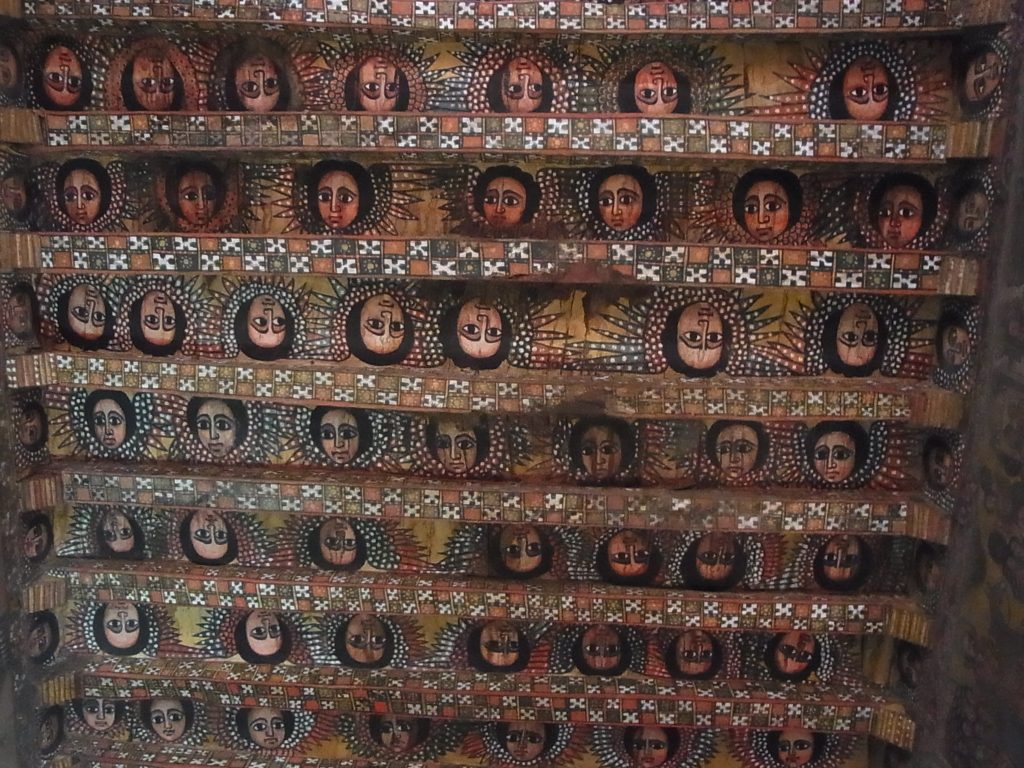 Last was Debre Birhan Selassie Church, with beautiful frescos of scenes from the Bible, and a ceiling painted with angels.