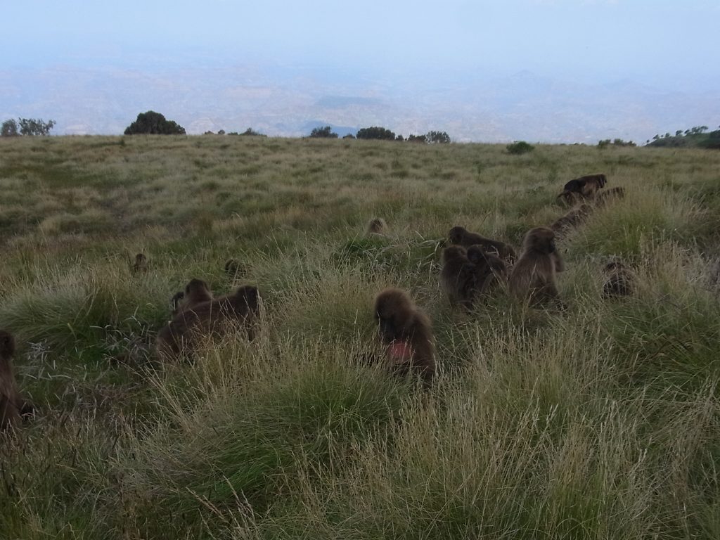 We drove from Gondar to Debark, which is at 2,700 metres. We passed a Falasha village and heard the story of the Jews of Ethiopia and their “return” to Israel. We saw a star of David on one of the houses. We settled in our hotel – the Ras Dejen, nice comfortable room. The Ras Dejen is the highest mountain in Ethiopia: 4,600 metres. We bought a guide to the Simien Mountains National Park, paid the entrance fee, drove for about an hour and started a three hour walk (with lunch of bread and banana in between). We were accompanied by three guides, and two of them had rifles to protect us from bandits (shifta) who kidnap people (we were told). Stunning views, path relatively easy, but found the high altitude – 3,250 metres – quite challenging. Walking sticks very useful! We saw lots of gelada baboons, they don’t seem to be bothered about us. I bought a nice little basket with the colours of the Ethiopian flag (green, yellow and red).