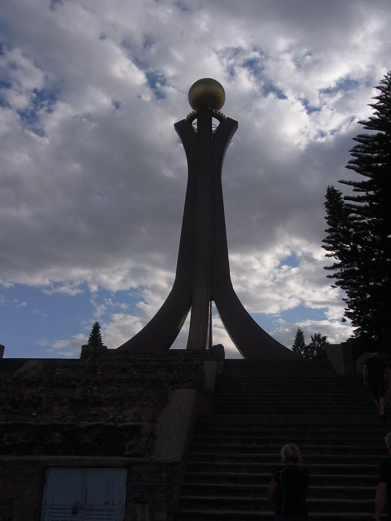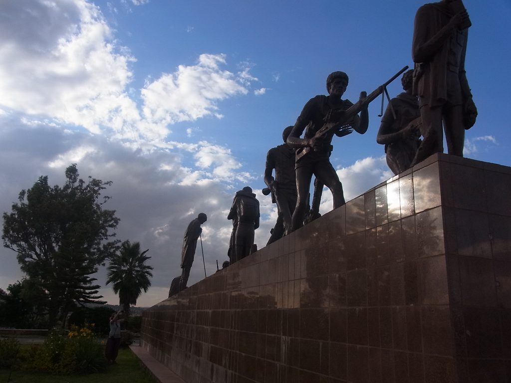 In the afternoon we made our way to Mekelle. We seem to be jinxed as the hotel we were supposed to stay in had made a mistake so we had to find another one. We are staying one night at the Zemarias Hotel in a better position in the centre of town. Quite luxurious, but the water in the shower was cold. Can’t have everything! After lunch we drove to the Tigray Martyrs Memorial which honours the patriots of Tigray in the struggle for democracy during 17 years of civil war against the DERG. Symbolism represented by the figures and statues and the central tower with a sphere representing victory. The TPLF (Tigrean People’s Liberation Front) was the main protagonist in the struggle.