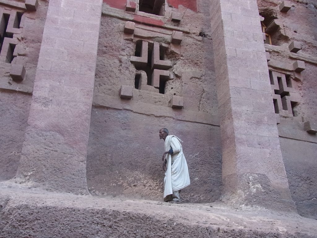 Today we visited the rock hewn churches of Lalibela. The town was fairly unknown until 25 years ago when the population was only 10,000; now it is 30,000. Only a few people came here during the 1950s. During the DERG regime no tourists came and from 1991 tourism started again but now it provides the main income of Lalibela. There are more hotels, more souvenir shops and many local people work as guides. Our hotel, the Roha, is part of a government chain.